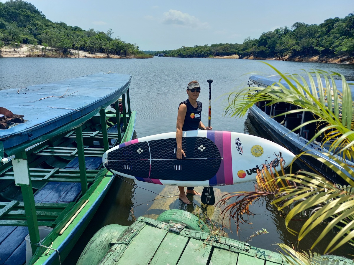 Roberta Borsani of São Paulo, Brazil launched an expedition in September 2022 to explore the Legal Amazon Region on her stand up paddle board. The focus of her trip was to reinforce the urgency of de-escalating activities that destroy this essential forest and offer a voice for those who live within its shade.