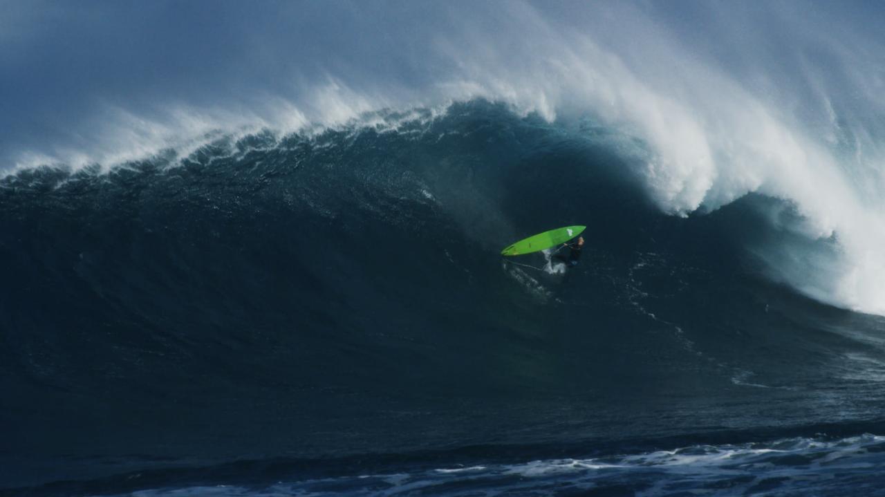 Super-heroes in their courage and toughness, these big-wave daredevils feel the fear and do it anyway, pushing past it to find out what’s on the other side as they tackle gigantic waves in locations from Nazare in Portugal, Jaws and Pipeline in Hawaii, and Mavericks in Northern California.