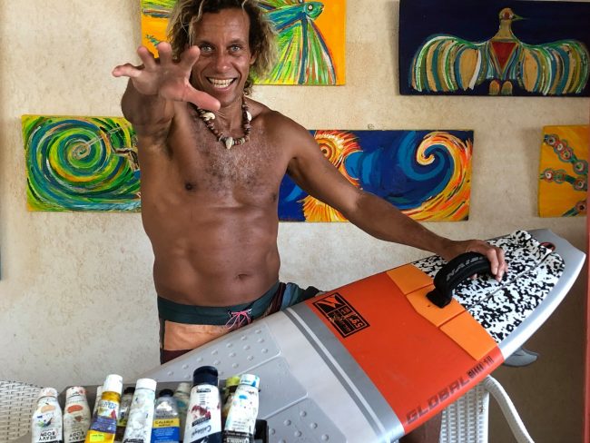 DeAction man, Brian Talma spreading his good vibes and community prosperity through the use of symbolic art (behind him) and the creation of the Beach Culture World Tour to promote organic tourism.A Return of Tourism to Local Culture