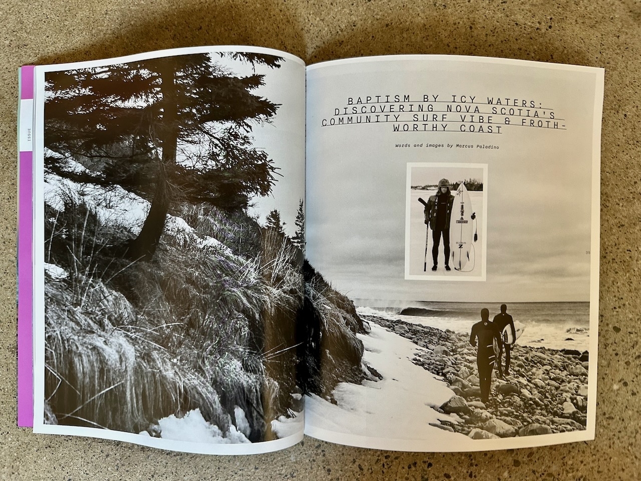 We've got a packed issue for you here in No 6. Greg Long is back to tell the story of his first ever yoga class and the beginnings of his mastery of the breath. TJ Thran travels to the far east to experience the goods of "JaPow" on a board consistent with Japan's cultural sensibilities of simplicity and elegance. Marcus Paladino goes coast to coast from western Canada to Nova Scotia to capture the essence of Canada's east coast surf scene and temperatures. Jon Anguilo reports from the Mexi Log Fest bringing his unique perspective of the energy fields and frequencies running through each of us and how they participate in the fostering of community. Our favorite scribe on the Irish coast, Dylan Stott drops in to share his perspective on being grateful through the lens of a family friend. Finally, Steve West reminds us all of the importance of security when securing our most prized possessions from the inherent risks of possible road rash.