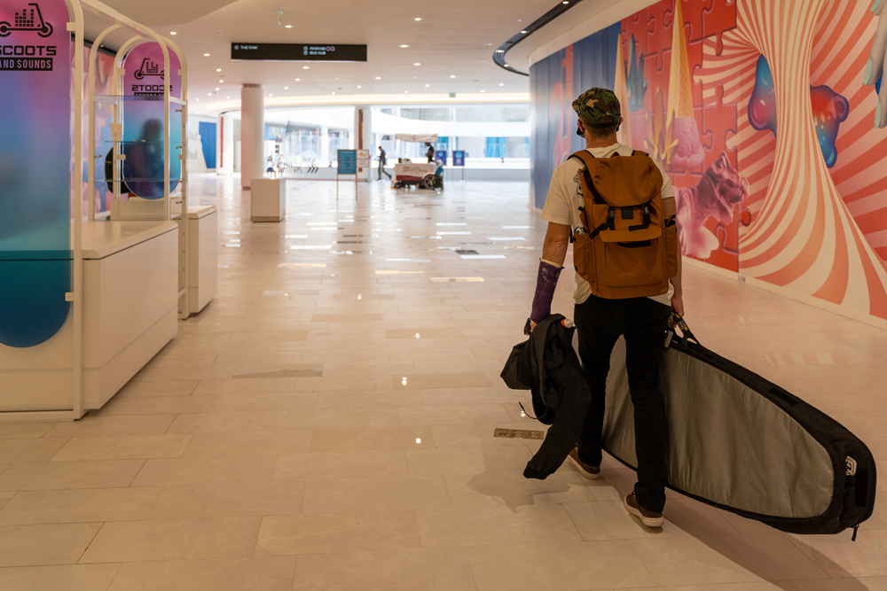Will saw an opportunity to continue teaching, coaching, and mentoring surfers through the winter with the use of the American Dream pool. So, he contacted the developers and struck a deal. Skudin Surf now has exclusive use of the pool for six hours a day to pump out waves from a literal menu of options they helped to create. Will and his team worked closely with the AWM engineers to pre-program the types of waves they offer. For beginners, there's the "Party Wave'' which is perfect for learning to catch your first wave on your own. As you progress you can choose from the A-Frame options like "The Classic", "Gotham", or "Bonnie and Clyde". Each of the A-frame waves allow for simultaneous take offs with one rider going right and another on the left. Slight variations in the steepness of the wave, the length of the open face, and the presence or absence of an air section add to the variability. For athletes who are really progressing, there's the "Vortex". This wave creates an under the lip barrel designed for behind the lip take offs followed by immediate cover ups for surfers looking dial in their tube time.