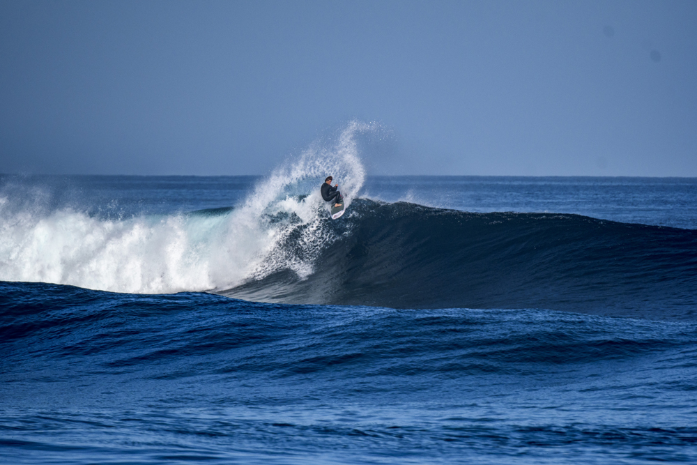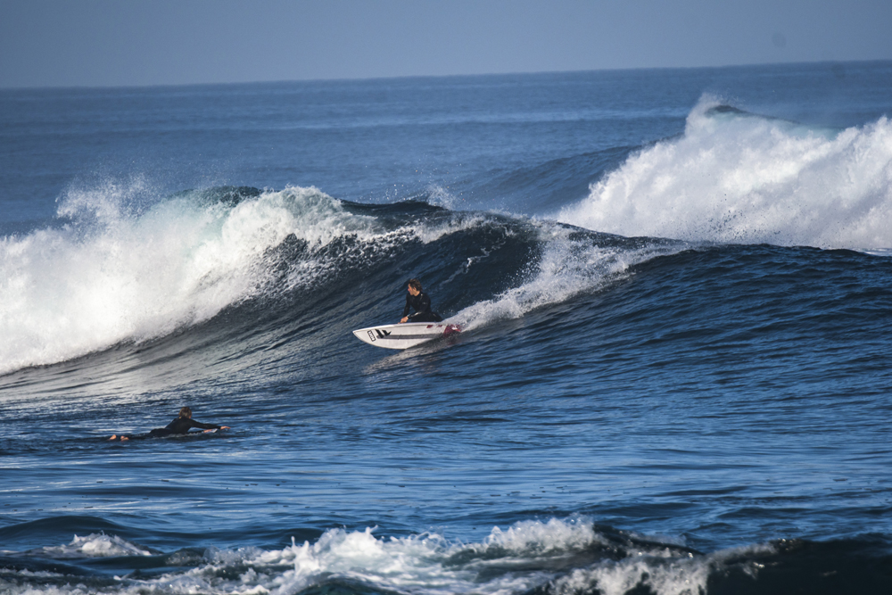 Clément: I try to spend a lot of time in the water and do a lot of video analysis when my dad is filming me. I analyze my rides and try to progress in this way. Sometimes I call on a few high level surfing friends who can help me unlock a movement or figure out a problem I see in a video, which is very helpful. In terms of external physical preparation, I don't have a specific program but I try to do other sports on the side. We recently got really into tennis with a few friends; we're having a lot of fun and it makes us run and work our legs. I did a lot of Pala (traditional Basque sport with a racket) when I was younger, and I was also swimming and participating in life saving training before I was 18. I did freediving training for four years to get ready for the big wave sessions. In winter in Fuerteventura, every morning we do 30 minutes of physical preparation with kettlebells, which are such versatile weights that allow the body to work in a fairly global way.