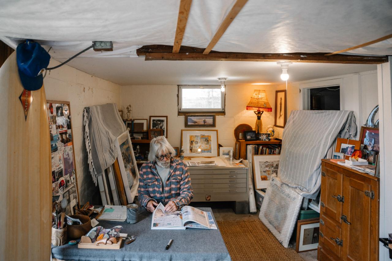 TC has been a real-life legend in the surf scene since the 60’s and has managed to continuously evolve and adapt within surf culture through the decades. He has been a competitive champion, surf shop manager, sponsored surfer, world traveler, wave pioneer, surf shop owner, artist apprentice to Peter Beard, surf instructor to celebrities (before that was a thing) and now, a successful artist using multimedia to create visual representations of his surf journal from his lifetime on the water. TC’s home is a living artifact full of surf history. Let’s walk in together and hear him talk story.