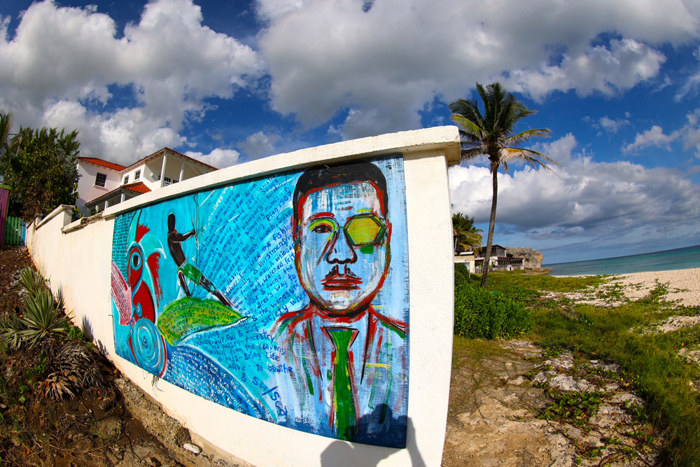 As he says, “Symbolism Art - for me - is creating symbols that are inspired by my ancestry, heritage and culture; symbols that tell a story depicting and reflecting my lifestyle. These symbols and styles don’t change, so whenever you see my art, it reflects Bajan beach culture and embraces this lifestyle.” Talma’s colorful, Bajan-themed paintings of flying fish, turtles, surfers and other whimsical creatures welcome visitors throughout the town of Oistins today. His artworks are affixed to telephone poles throughout the town, adding a sense of personality and place to its teeming fishing village.