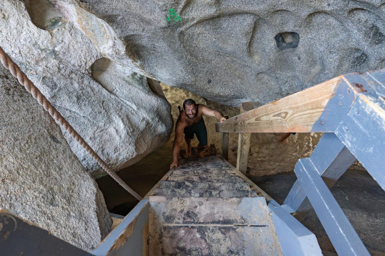 Day Two started with a quick, early morning tour of what the area considers the 8th wonder of the world. The Baths on Virgin Gorda are apparently visited by more than half the visitors who make their way to the BVI's. The short beach walk through the colossal-sized boulders was indeed impressive and we were fortunate to be able to get through the labyrinth and back to the boat before the mid-day rush. Motoring upwind along the northwest coast of Virgin Gorda, we rounded Mosquito Island and found anchorage in the lee of Eustatia Island owned by Google founder Larry Page. There were heaps of heavy construction vehicles on the island pushing large piles of dirt in preparation for what I could only imagine would become a sizable compound. A short distance upwind from our anchorage was Sir Richard Branson's Necker Island which has a rich history of popularity due to the prestigious people and events the island has hosted over the years.
