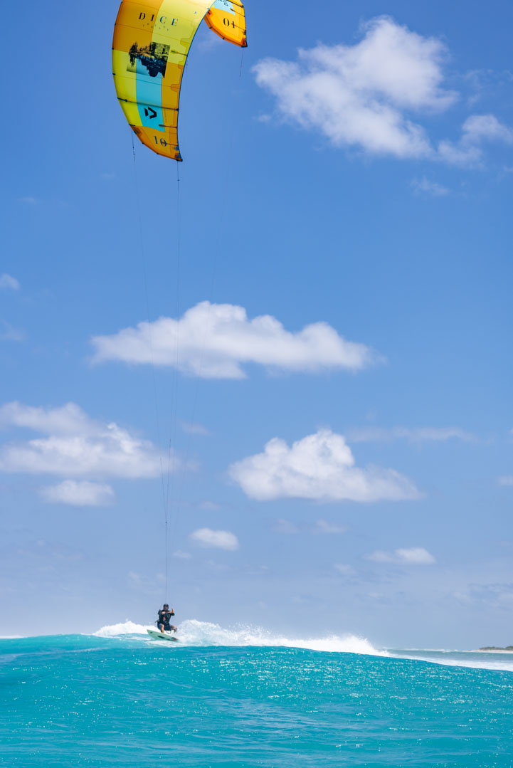 The waves were epic and it didn't take long before a team of kiters came out to join us. “Where did these guys come from?” One minute you're thinking you’re as remote as you can get, then suddenly a crowd emerges. They were as surprised to see us as we were to see them. The thought of a chance encounter like this one only heightened the vibes. Once it was clear that both parties were happy to see one another, the level of engagement and bravado amplified. We were hooting each other into sets, sharing waves, and working like a fluid machine on a mission to make sure no wave went unridden. Gigi was on the dinghy in the channel putting herself closer to the action than was warranted. Levin was back on the boat watching somewhat nervously from a pair of high-powered binoculars. The inevitability caught up to us eventually and we found ourselves getting a little too deep on a few waves that closed out and separated us from our gear.