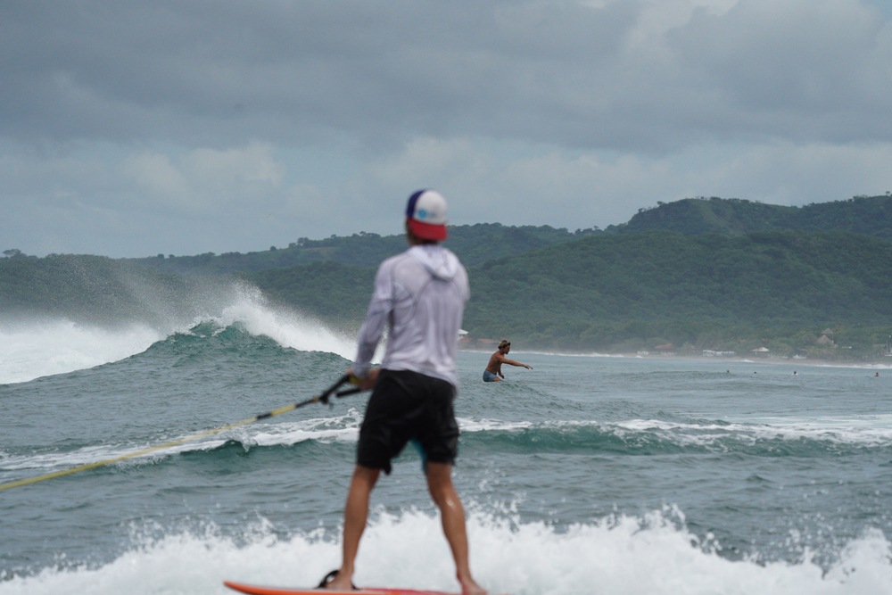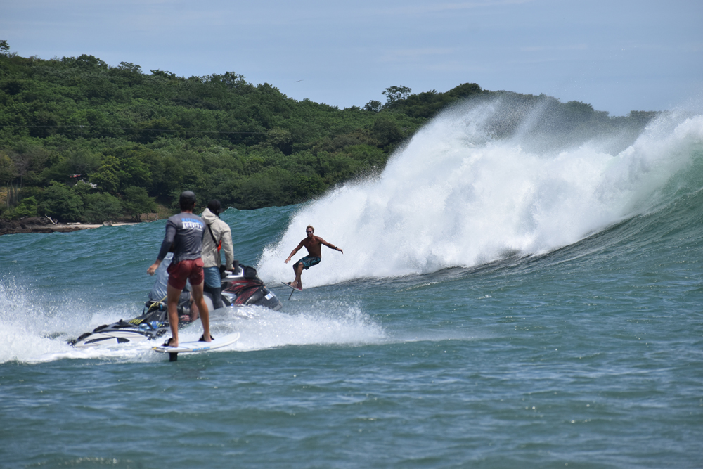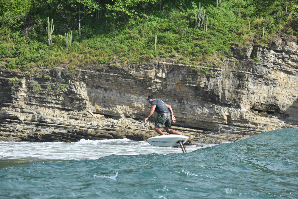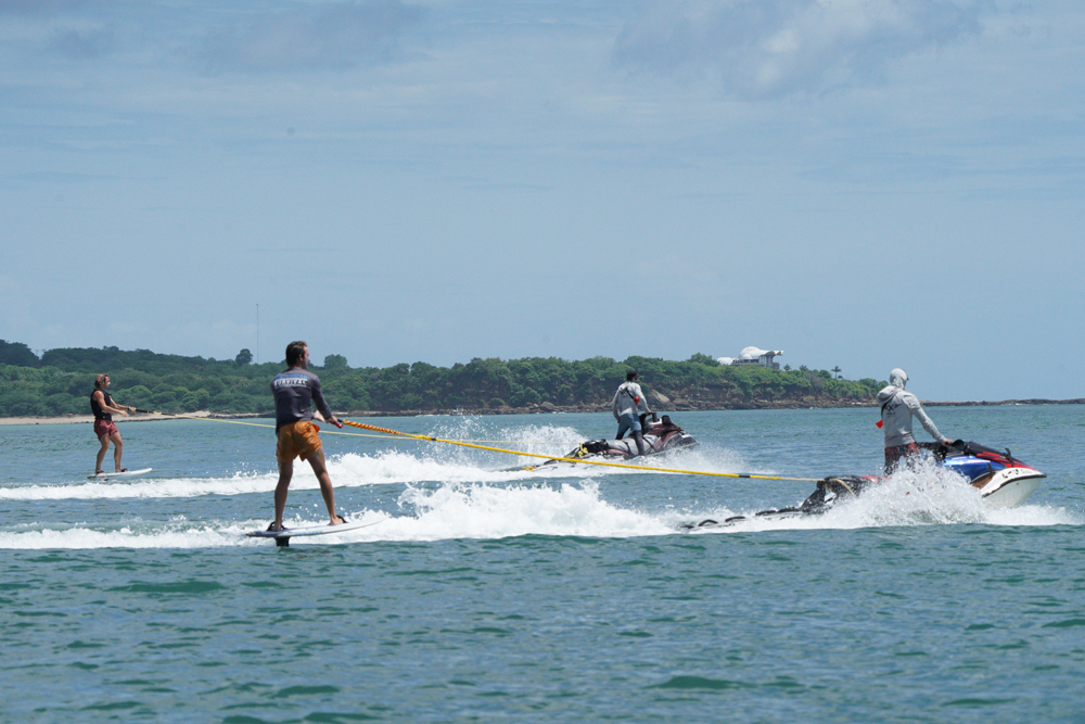 The next morning was an early start with the Foil X crew already in motion well before sunrise. The jet skis were staged on the beach and Logan (aka low dog killer) was en route to the marina to fetch the boat - a 28-foot panga that would be our base camp for the day. We inhaled some coffee, granola, and fruit then hurried to assemble our foils after getting the word that we'd be pushing off in the next 15 minutes. The jet ski ride out to the panga did more to wake my tired soul than the two cups of coffee I'd had back at the hostel. Dodging the heavy closeouts seemed more easily done when synchronized to the loud and inspiring James Bond theme music that was playing from the on-board waterproof speaker. As I stepped from the back of the ski onto the awaiting panga, my adrenaline was red lining and my expectations for the day had doubled. We were in the midst of professionals living out their dream jobs and doing so with style.
