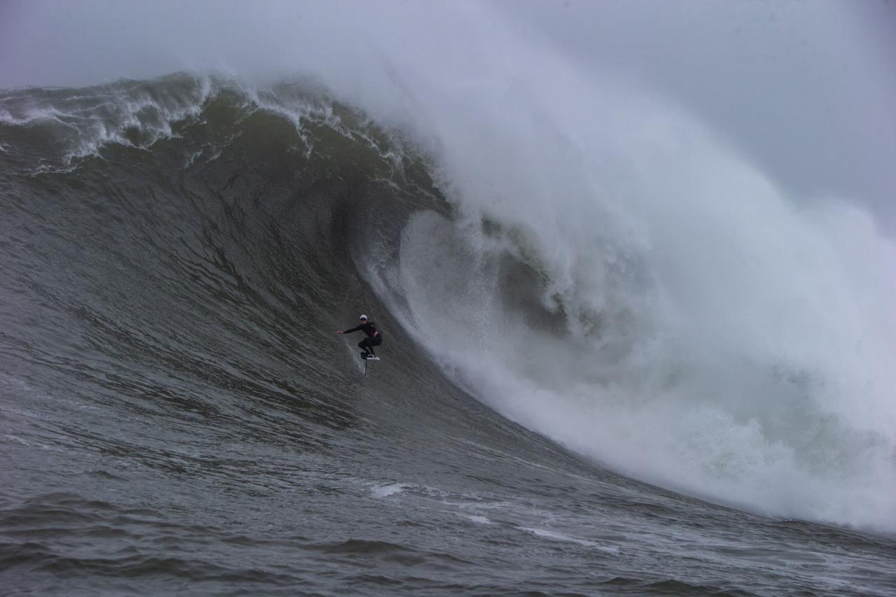 Matt Etxebarne foils a Mavericks monster seemingly unaware of the Goliath looming in his wake. Fred Pompermeyer