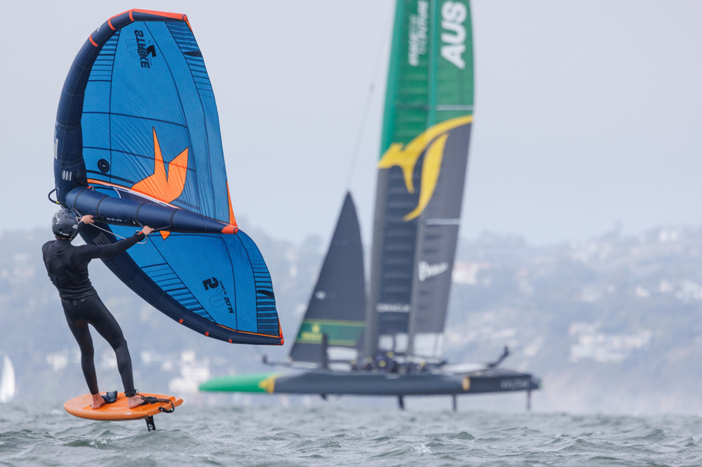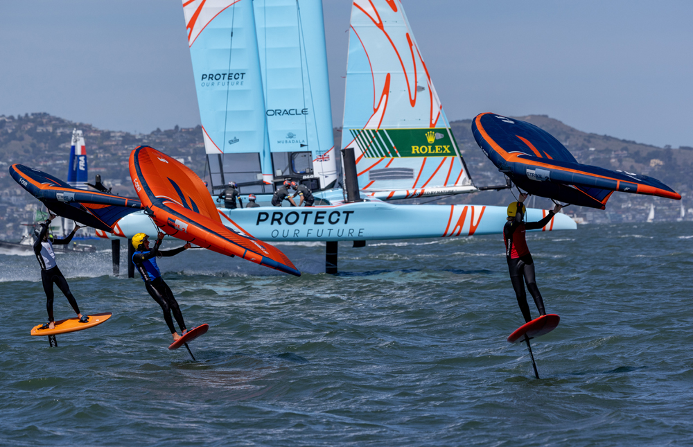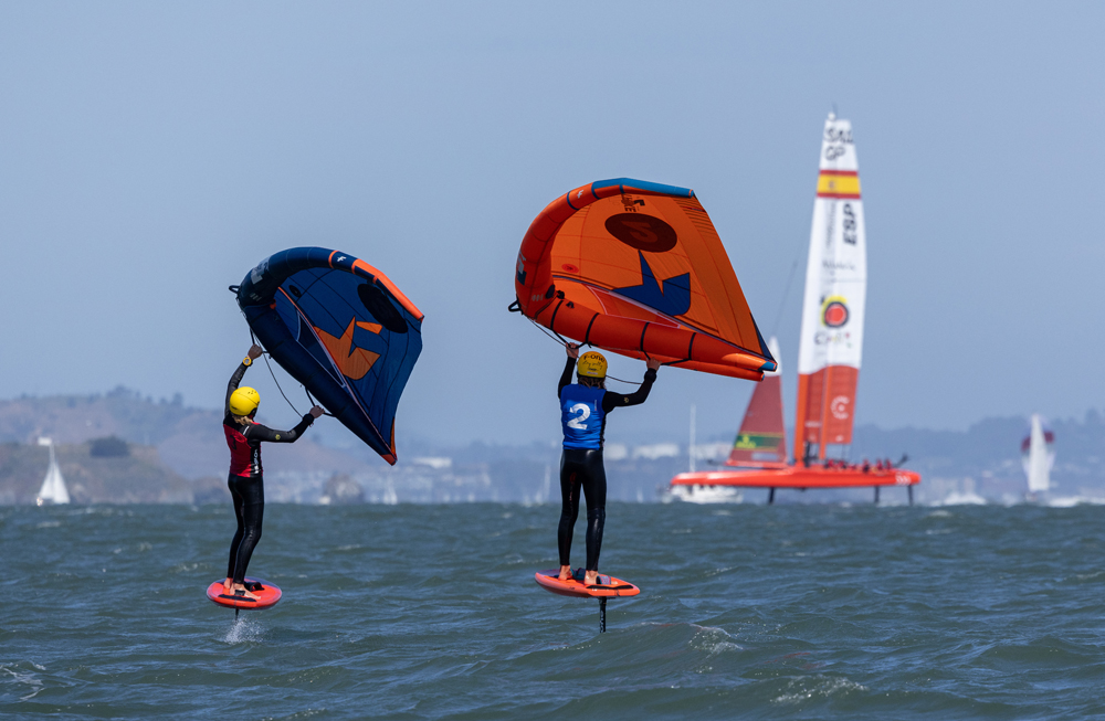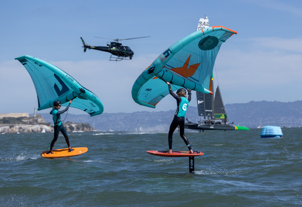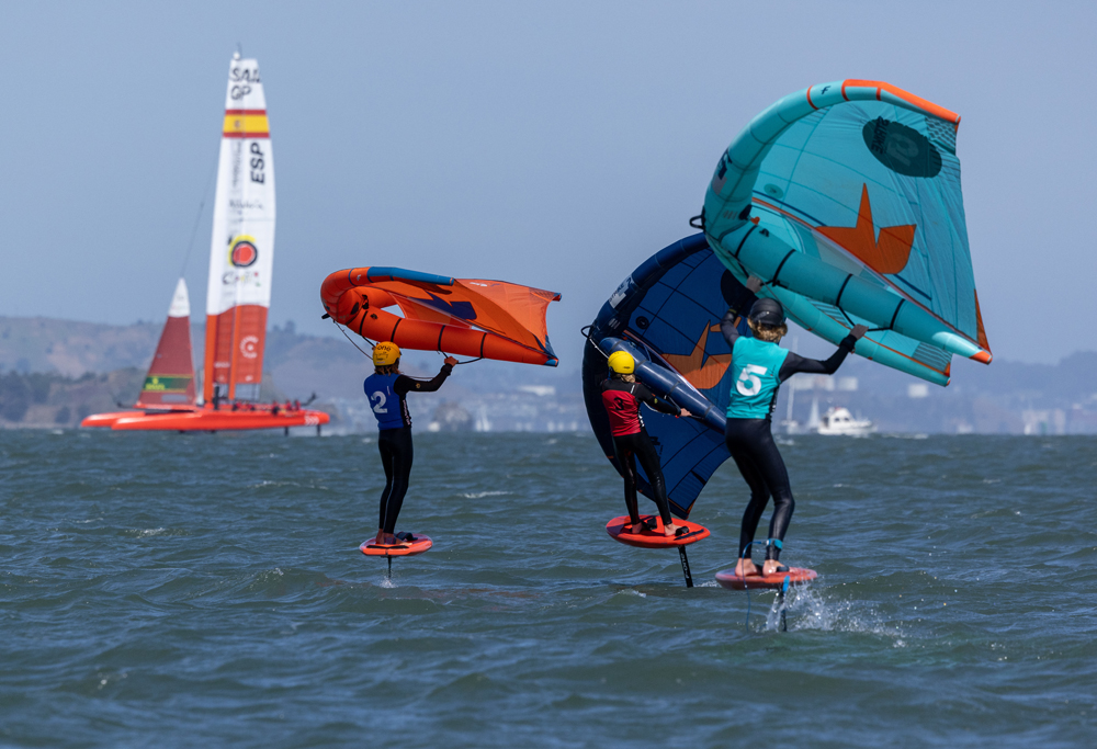 Wing athletes from the F-ONE Next Generation Grom Squad executed their skills on a wing foiling slalom course showcasing new and exciting possibilities from within the sport of foiling. This effort by SailGP to showcase wing foiling to a larger public audience saw over 6,000 dedicated racing fans in attendance. The Grom Squad clearly had its moment of glory.
