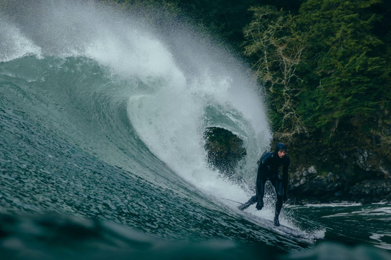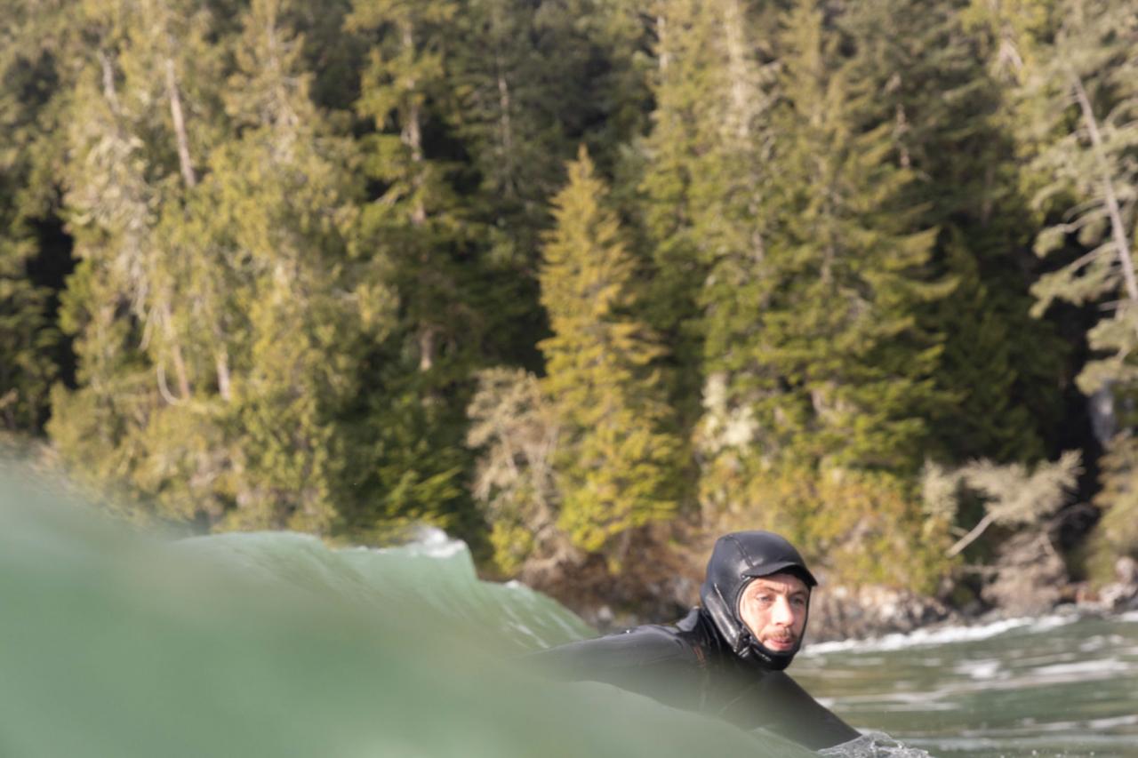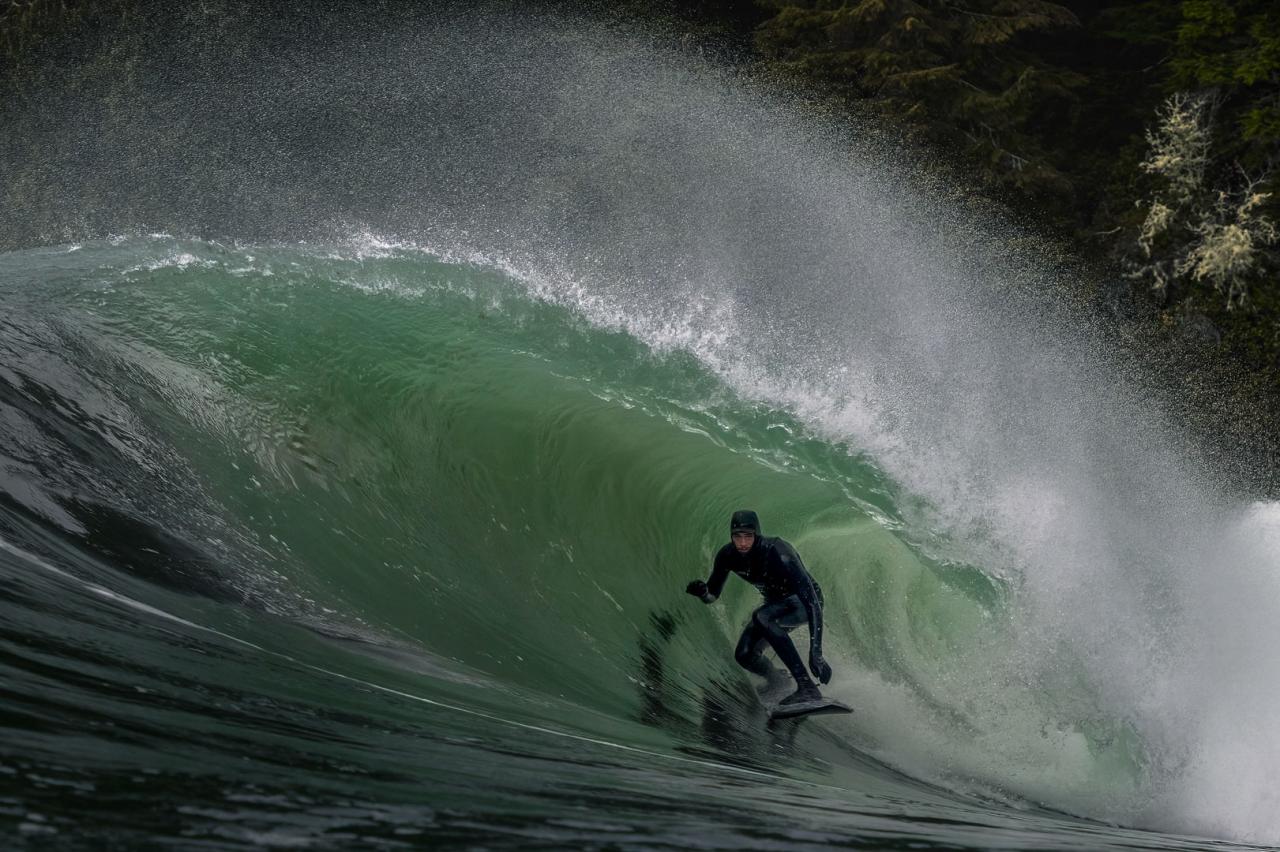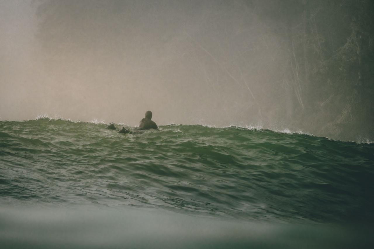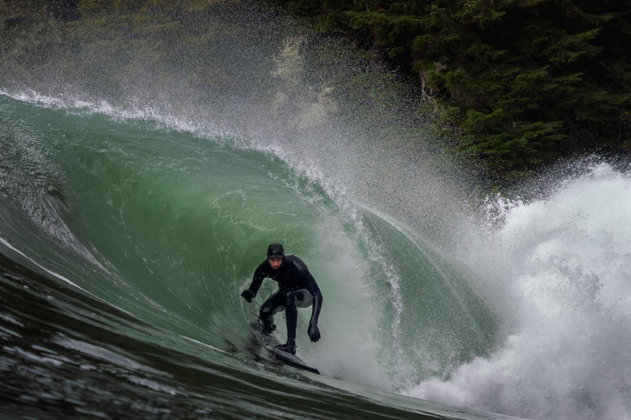 Once out in the lineup, it immediately became clear to me that one surfer knew how to handle this wave. Michael Darling had come out and was having his way with the swell. It was easy to focus on his surfing and within a couple sets he pulled into a perfect Juan de Fuca barrel rolling it’s way through the old growth. I knew I’d gotten what I came for: the shot I wanted. I was more than stoked. What a perfect afternoon.