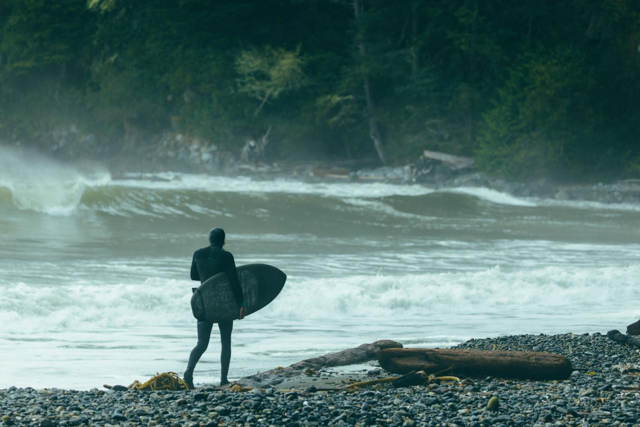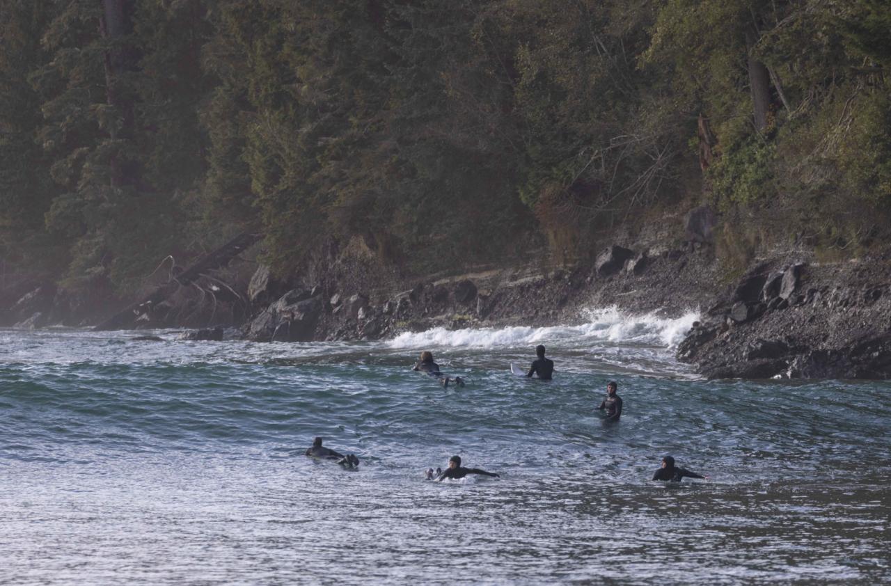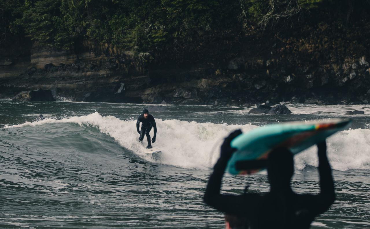 I gathered my equipment and headed out through the trail down to the break. It's a neat spot. As you descend, you pass giant Sitka Spruce and Red Cedars. You can hear the ocean and, if it’s good, you can hear the unmistakable crack of the waves on the shores below. This day, it didn’t sound bad. The final corner tells the tale. If the swell is working you’re gonna be able to tell. It was working. Surfers were doing their best to tame her, but she’s a tricky old wave. The takeoff is steep and if you hesitate at all it’ll snap shut on you before you can pull into where you need to be. Taking off deep is essential. There’s not many around here that even bother trying to get into her jade laden barrels, or for that matter know how to do it.