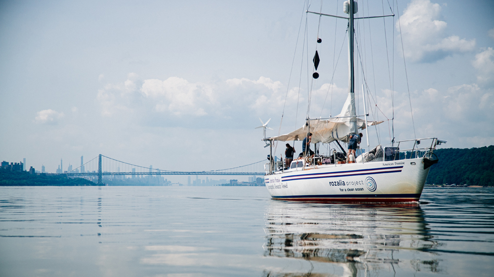 A recent expedition on the American Promise is known as the Hudson River Microplastic Sampling and Technology Expedition. This project, led by The Rozalia Project’s founder Rachael Miller, researched microplastic and microfiber pollution in the air, whole water column and soil of the mighty Hudson River in New York, starting from high in the Adirondack Mountains all the way down the river to Manhattan to where the Hudson meets the Atlantic. In addition to investigating the tiniest of marine debris and their impact on the ecosystem, the expedition was also a field test for new science-enabling innovations and techniques. The team included Dr. Claire Gwinnett and researchers from the Forensic Science Dept. at Staffordshire University, a materials engineer from Patagonia, water scientists from the CDC, visual storytellers, educators and more.
