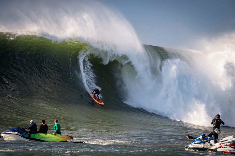 Jeff Clark narrated the live broadcasts on board while sometimes heaving and dodging massive sledges of whitewater in his boat. He even answered questions from viewers, at the same time navigating tricky currents and ducking the fallout of one of the most notorious big wave breaks on the planet. The thunder of crashing waves sounded like gunshots going off, and the excitement in the channel was palpable as the world’s greatest big wave surfers and photographers came together to capture Mav’s massive swell.