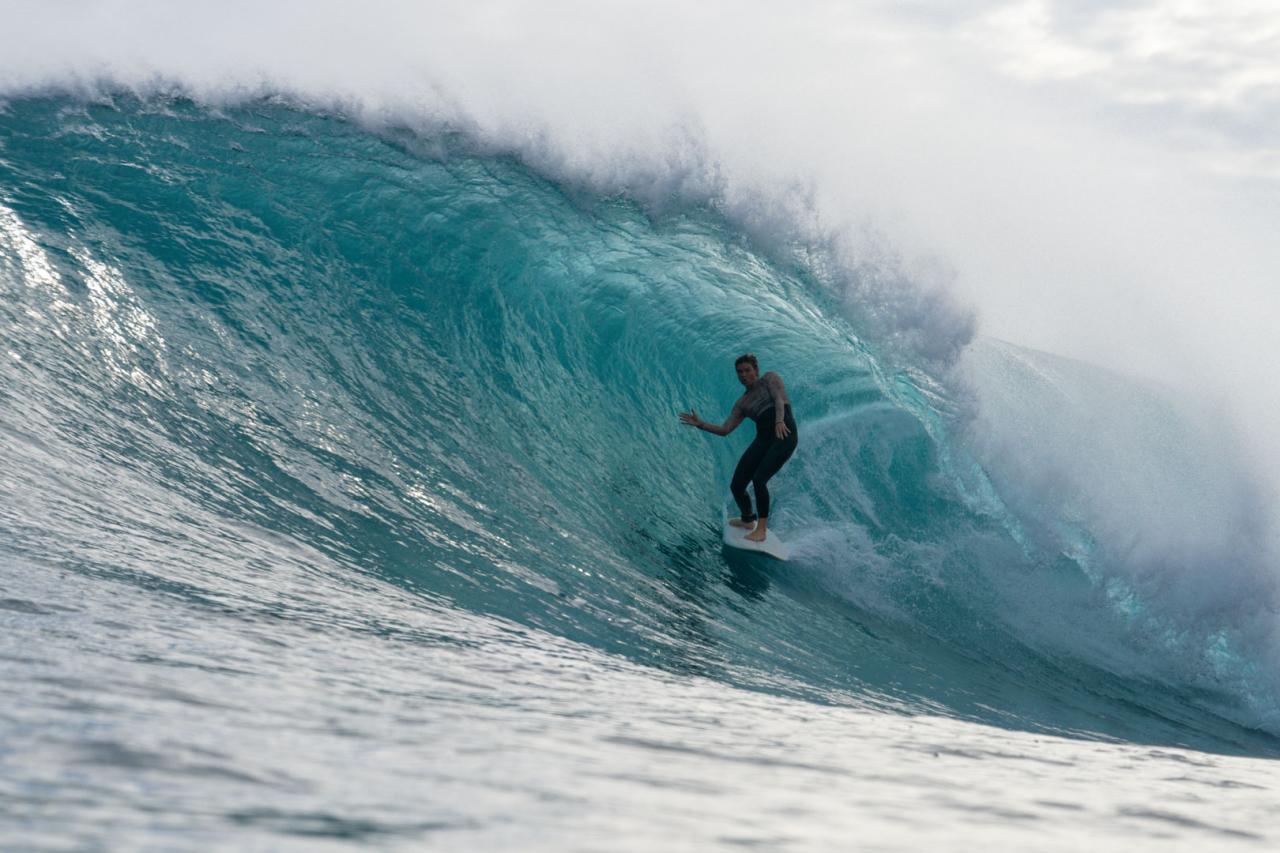 Of course, it turned out to be Josh Kerr. After twenty minutes to get my bearings, I paddled for one that looked similar to what I’d seen Josh go on. I paddled as hard as I could on my 6’8, got halfway down the face and realized I could relax. I took my time on a slow bottom turn, went into a highline, feeling the rush of the intense wave beneath my feet. I kicked out knowing I probably could’ve gotten tubed if I took a different line. “Next wave”, I told myself.