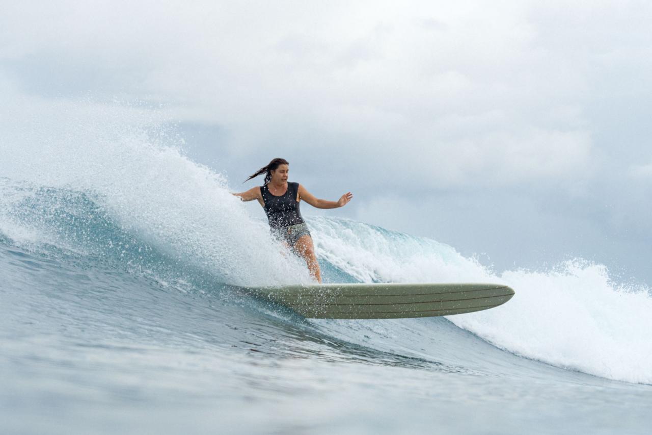 The first friend is Kassia Meador. Kass was my childhood idol and has been a dear friend since I was fourteen. She’s the trailblazer, responsible for infusing a female aesthetic into modern longboarding as one of the first female pro free surfers. She and I have been hosting surf retreats together for the last five years, and this particular surf trip was a prelude to a twenty-two day stretch of hosting other surfers for their own Mentawai dreams.
