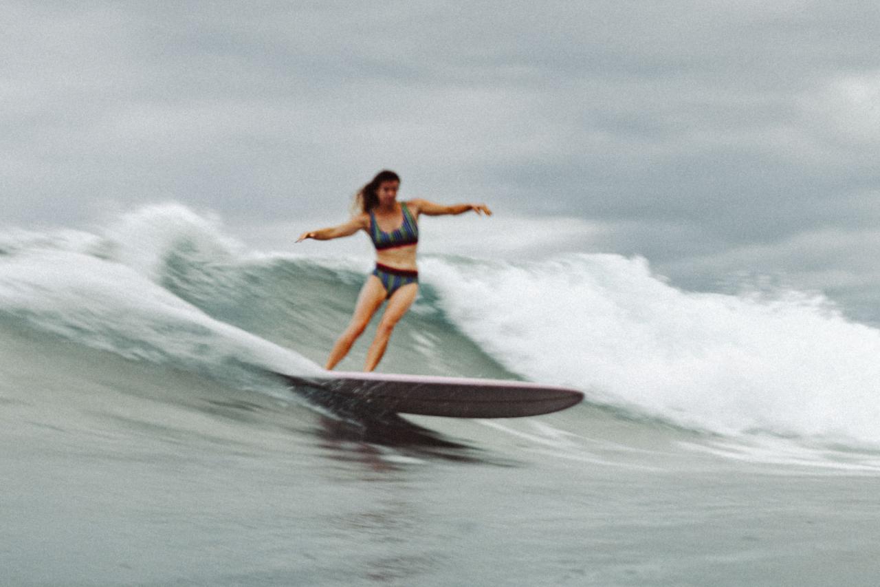 Backside nose riding has always been a weak point in my surfing. The balance and weight distribution between the feet is completely different to frontside nose riding, and it's very difficult to keep the board from slipping out from under the feet and away from the wave. Not so for Karina. She amazed me as she thrived on the backside perch. She was riding a board that she had made by Thomas Bexon nearly a decade ago. She sold it, then regretted it. So a few years later she bought it back, knowing magic boards aren’t boards you sell.