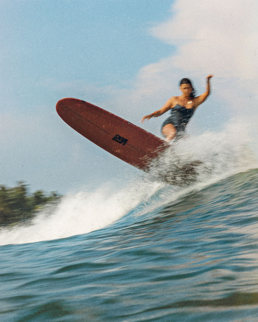 I watched up close as Makala took off on a set wave, took six steps straight to the nose in a wildly steep, tall section, and stuck the noseride. Then she backpedaled all the way to the tail, and completed the best carving turn on a log I’ve ever witnessed.