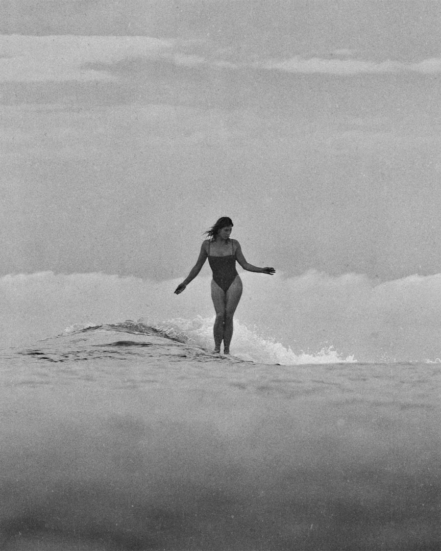 Next is Lola Mignot. Lolita is the ever-worldly wonder woman whom we’ve all known since she started traveling on her own with her longboard at age thirteen. She studied Kassia’s technique early on in her surfing — one can see the influence, although she spices it up with her own French-Mexican flare — and loves to put her board on rail.