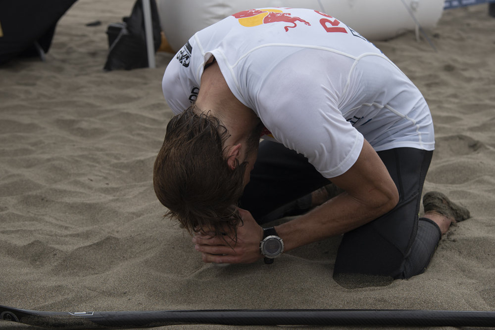 As I rounded the outside buoy and returned to the beach I was euphoric. I caught a solid wave on my Naish Maliko 14 x 23’’ and rode it all the way up the beach. I had no idea what place I was in, but it already felt like a victory just having survived a lap through the surf. My brother screamed “YOU ARE IN FIRST PLACE”. It was surreal, but in that moment I knew that I had a shot at winning the event and defending my title. I had come to terms with my fear and now realized it no longer was a hindrance. It was a strength. It was the fear that allowed me to make the right decisions and I could use it to my advantage. Game On!!