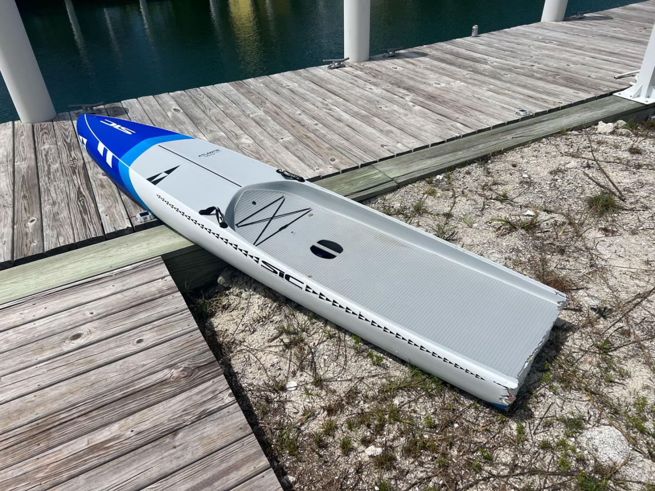 Upon arrival in Bimini, Chris and I learned, incredibly, that our team’s two boards (a SIC 14’ Atlantis and a SIC 14’ Bullet) had somehow been snapped in half on the boat ride from Florida. For logistical reasons, our team had been split up into three separate boats for the ride over. The third boat, a 60’ safety vessel for the crossing, cargoed our boards over on Friday evening. At first I thought the news of the broken boards was a joke, but then I saw them for myself. Two perfectly brand new, 14’ stand up paddle boards made of carbon and fiberglass had been snapped completely in half. There is a story there, but we will leave it for another day.