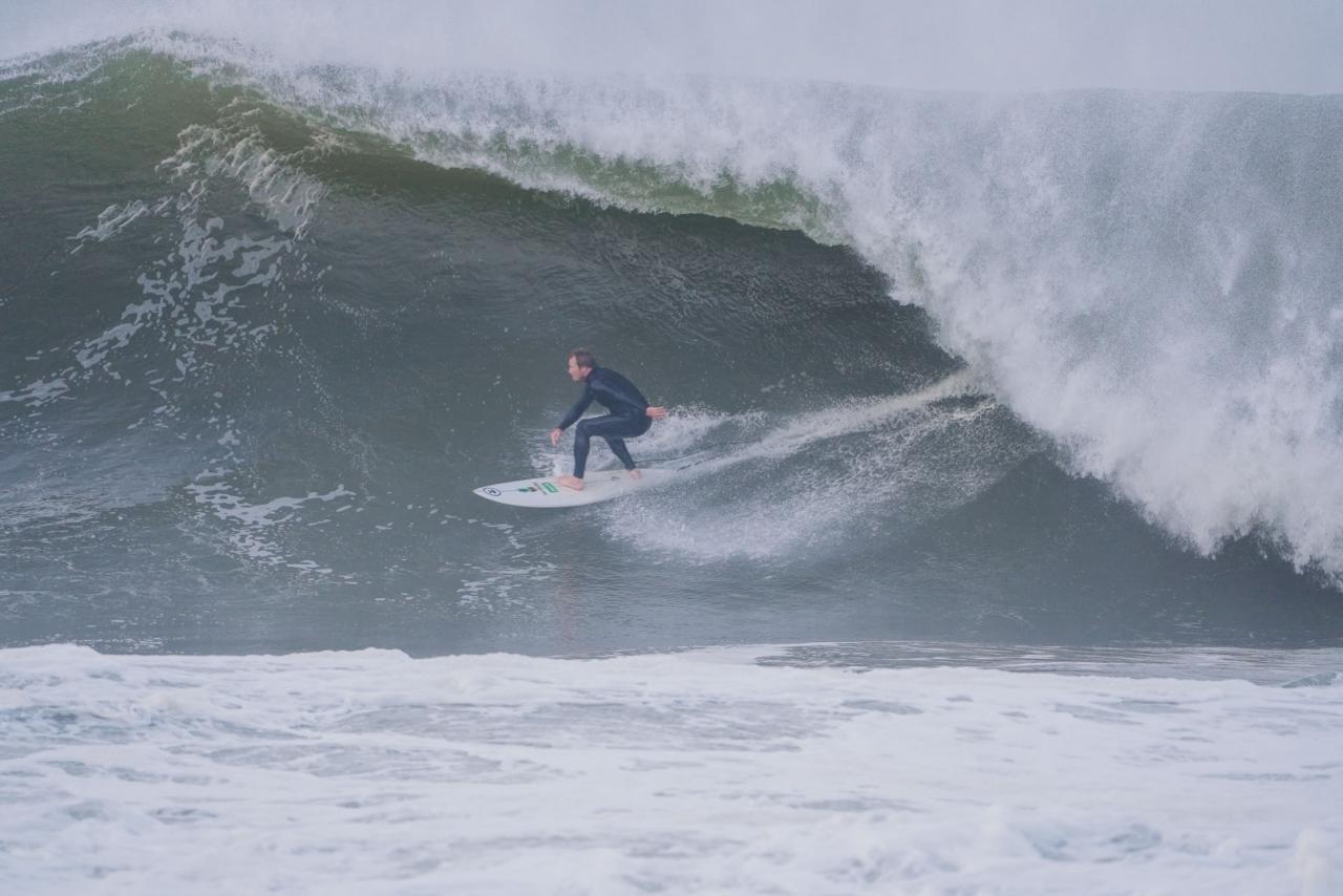 “Hurricanes are full-on hype trains. I always swear I’m not getting onboard — but somehow — I end up hopping on and sitting right up front. It’s tough not to buy into the madness when you want more than anything for it to get good. Don’t get me wrong, Erin was solid — definitely the swell we needed after a five -or six-month hiatus from overhead surf that felt like forever. The swell hung around for about four days, but took its sweet time to really line up in New York. When it finally did, though — the last day was magic: bluebird skies, punchy, clean, overhead surf. Definitely worth the price of the hype train ticket.”
