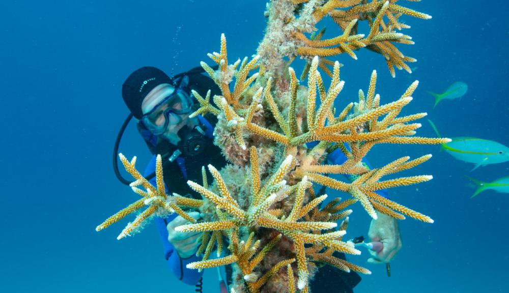 After identifying these strains, they began to collect them (all with the necessary permits to do so), place them in nurseries, and are now in the process of reestablishing the mature corals on the bleached reefs, where they are thriving, thanks to their natural resistance to the forces that bleached the reef in the first place.
