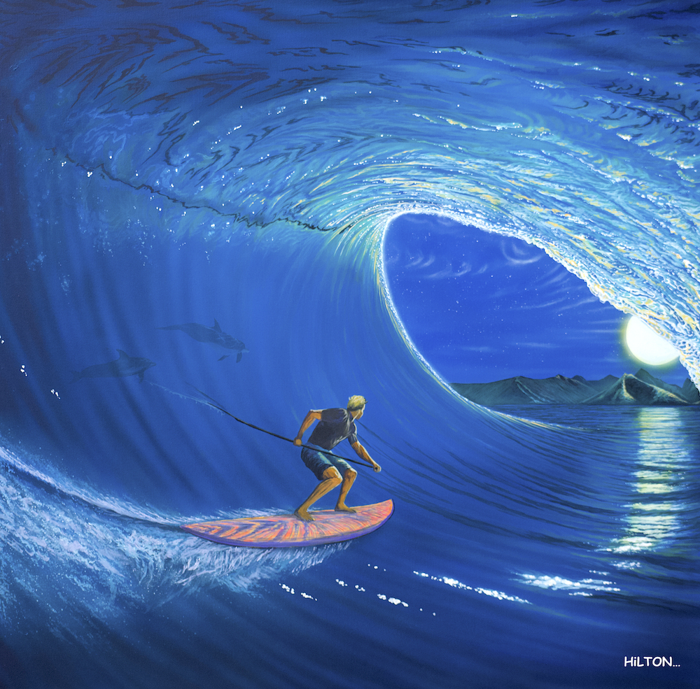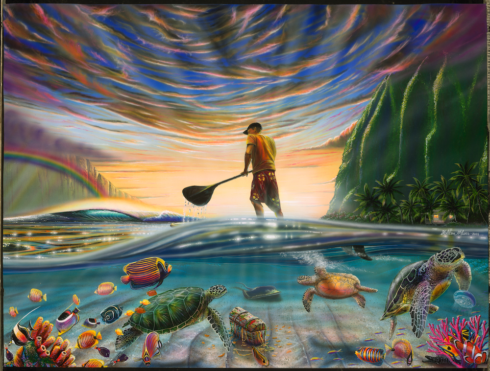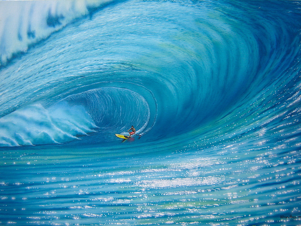 Hilton Alves is a longtime lover of the sea and water sports. Born in Guaruja, Sao Paulo, Brazil, he began painting professionally in June, 2000. His passion for the ocean and depth of talent gives him the opportunity to express the magnificent beauty of the aquatic world through his paintings and large murals. Alves’s passion for the sheer beauty of ocean life is captured in his paintings which highlight the themes of surfing, marine life, perfect waves and playful street art. A self-taught artist, Alves uses acrylic, spray paint and other mediums to bring to life the inspiring visions of his imagination.
