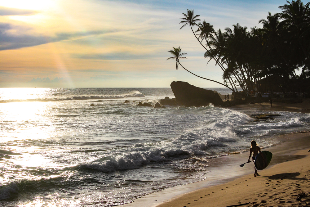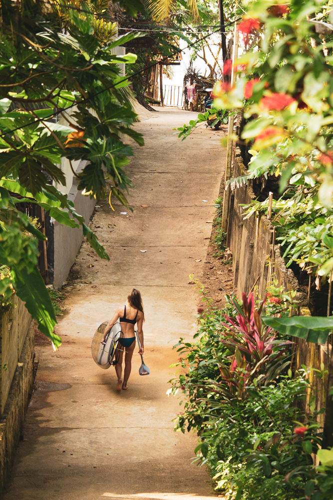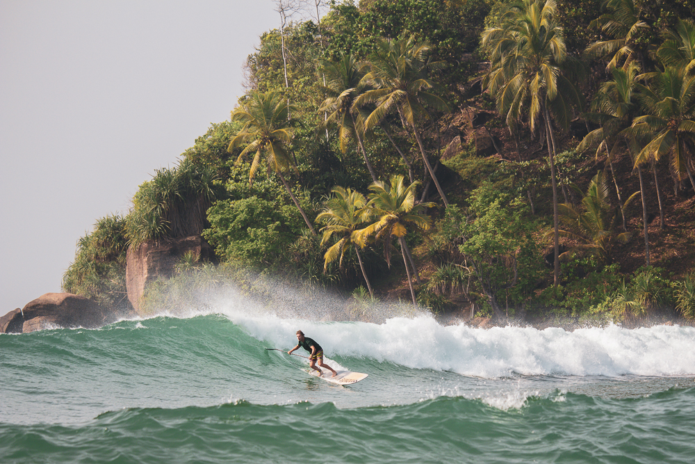 When you escape the chaos of the city and catch a glimpse of the azure coastal waters, it becomes immediately apparent that Sri Lanka is fully embracing the pleasure principle of surf travel. Up and down the coast, cozy surf hostels and yoga retreats are tucked away behind tamarind trees and plumeria bushes, offering the visiting surfer a place and time to connect with themselves, the ocean environment, and the culture. Here, you can wake up to down dog, eat local organic potato, vegetable and tofu roll, or go hunt for the closest Rob Machado lookalike on the beach and rent your board from him.