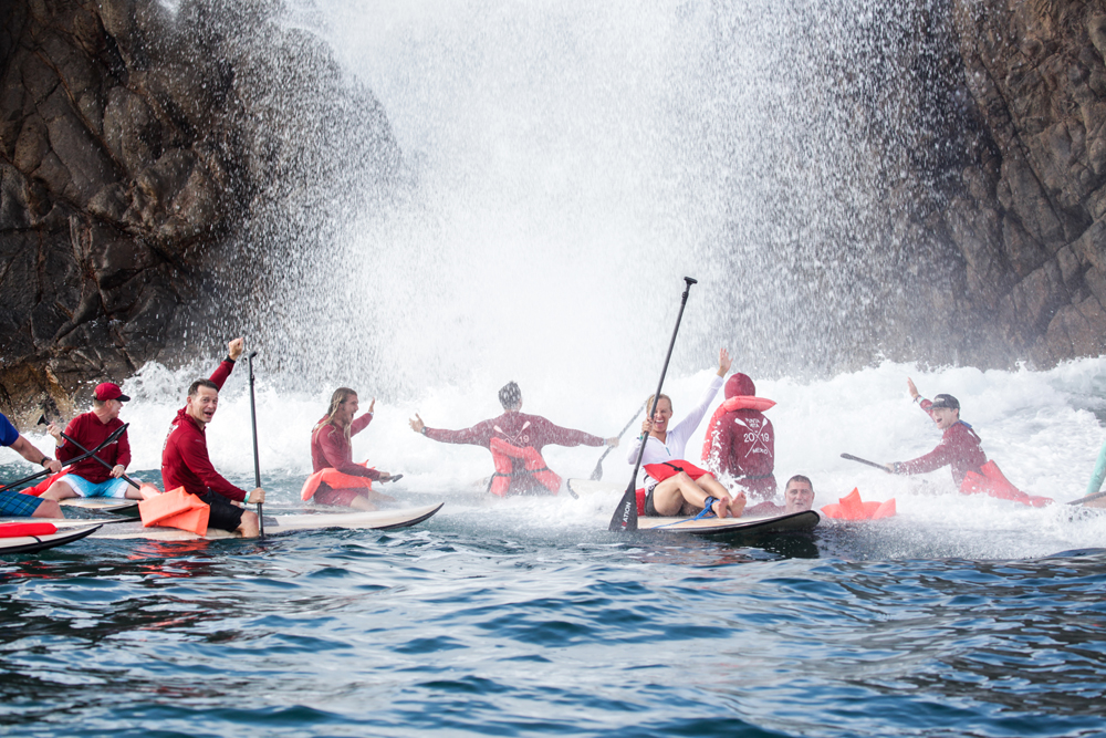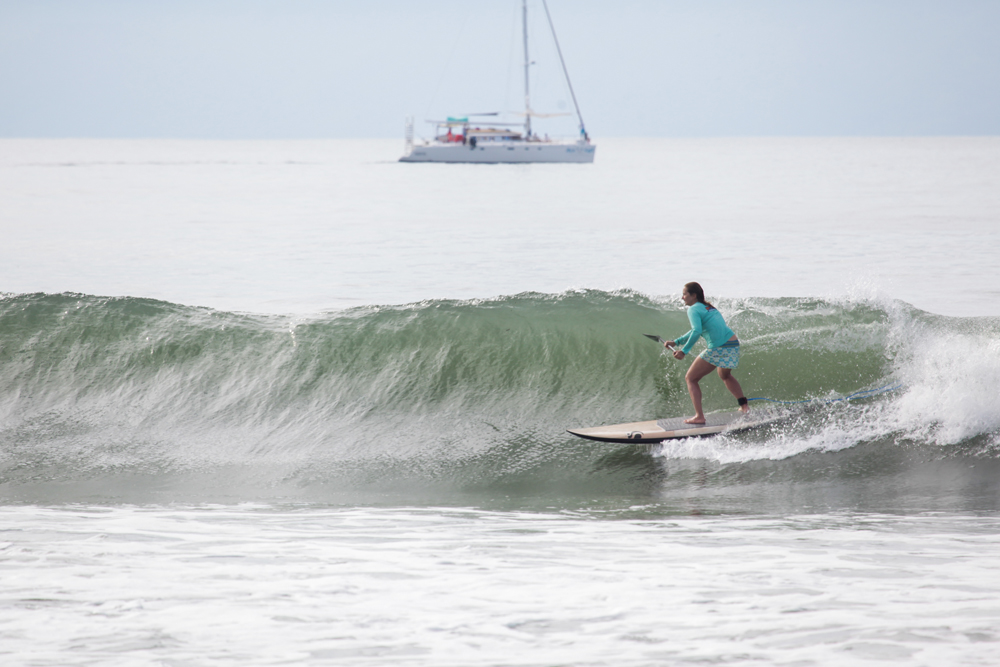 It’s worth noting that GenRation provides multiple dynamic services. GenRation Xperiences (GRX), like this one, offer luxury-style wellness retreats with high quality coaching. The brand also showcases sophistication and practical knowledge through their development of a new line of high performance SUPs. These boards, designed by legendary shaper Bert Burger (original innovator behind Firewire Surfboards and creator of Sunova Surfboards) alongside GenRation’s co-founder Sean Poynter, are manufactured by Sunova. Made from balsa wood, the boards are lightweight and designed for high performance with step up rails, pulled in tails and a shallow profile for speed. GenRation supplied 12 of these new surf SUPs to the retreat for participants. There was the Wedge, the Kanga and SP25 to choose from, depending on one’s skill level. Each board came in varying sizes and volume in order to properly match every rider’s ability. This was clearly an exclusive opportunity to learn from the best on high level equipment.