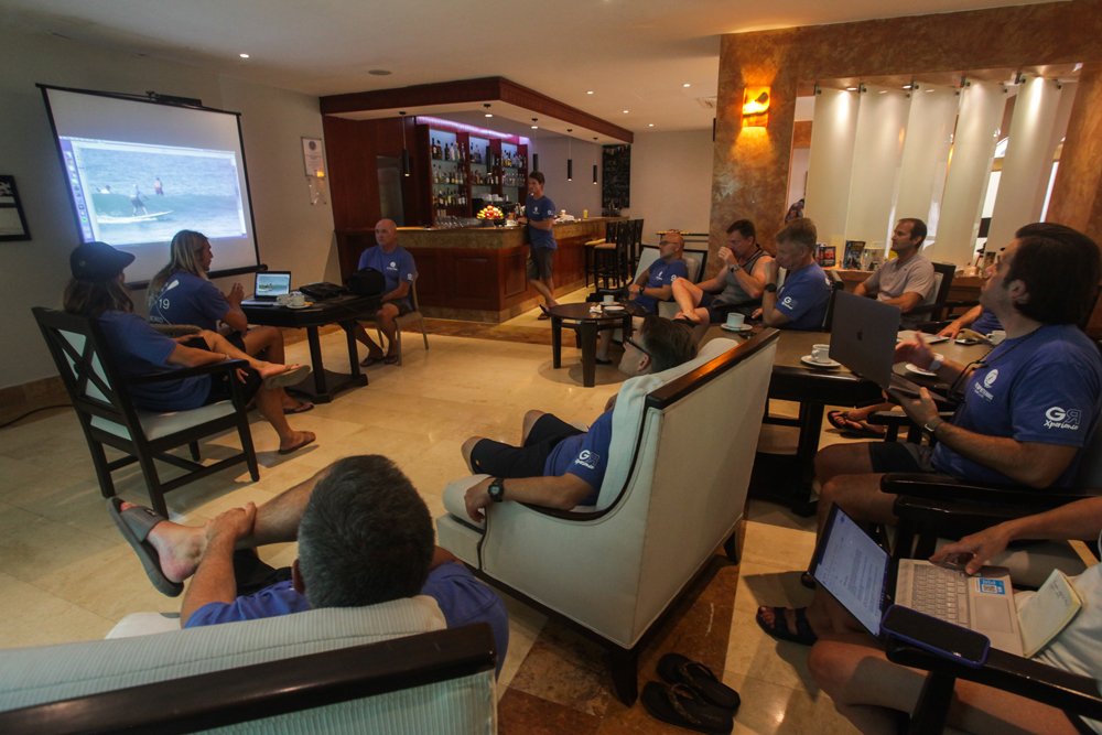 At 1PM, we met in a private room in Grand Palladium Vallarta’s vast network of spaces, with a large screen and video monitor, freshly ground coffee and homemade pastries to settle into comfortable chairs and spend a few hours reviewing our morning waves.