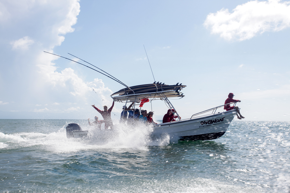 So, on Thursday afternoon, rather than risk additional injury (there were a couple of men down already from attempting powerful surfing techniques the body wasn’t ready for yet) GenRation brought in a couple of pangas - or covered boats - to take us off the mainland of Mexico to one of the outlying islands. Boards fully loaded and beers in the cooler, we headed out across the open ocean to one of Mexico’s natural preserves & hidden gems, the Marietas Islands.