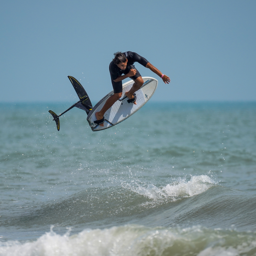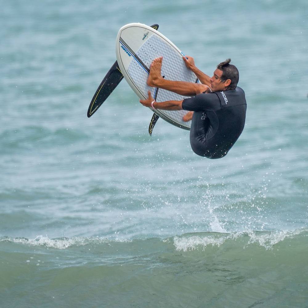 "My first foil board came when my dad took an old paddle board of his and threw a foil box into it. My first couple waves on that thing were challenging, but pretty fun for the few seconds I got up and flying. I was hooked from my first few tries. I knew I wanted to get really good at this."