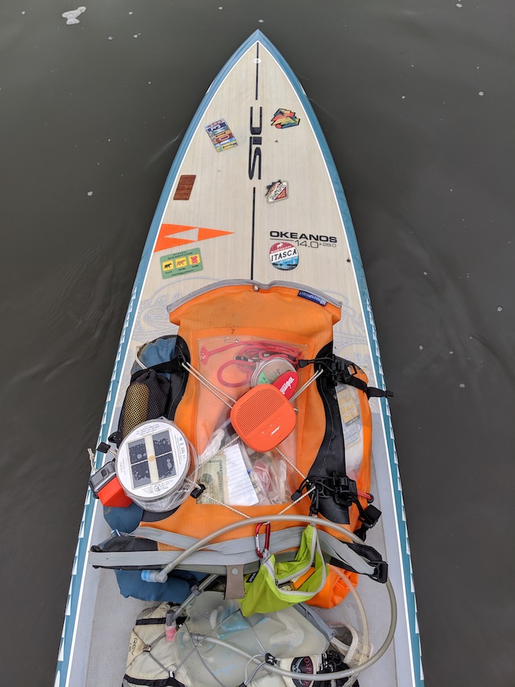 “I tried to train a little bit. I’m lucky enough to work on the water as a guide & instructor at Manhattan Kayak Co. on the Hudson River, so I get a lot of training in my daily routine. My biggest prep was when I finally got my SIC Okeanos board. I wanted to make sure it would do well in wonky river conditions so I took it to the East River in NewYork City from Hell’s Gate to City Island. I wanted to test it with a lot of weight on it since I would be carrying a full load on the Mississippi. So I piled a bunch of kettlebells and medicine balls on board to see how it would manage in turbulent water. It did all right! That was my biggest test.